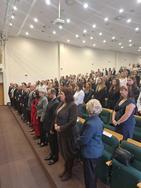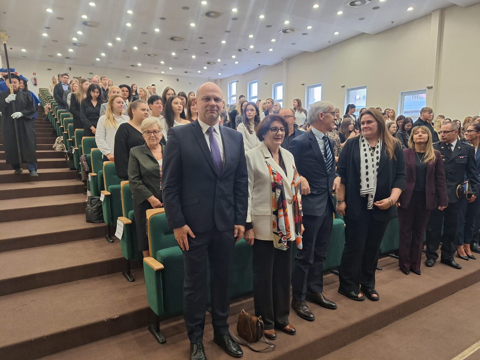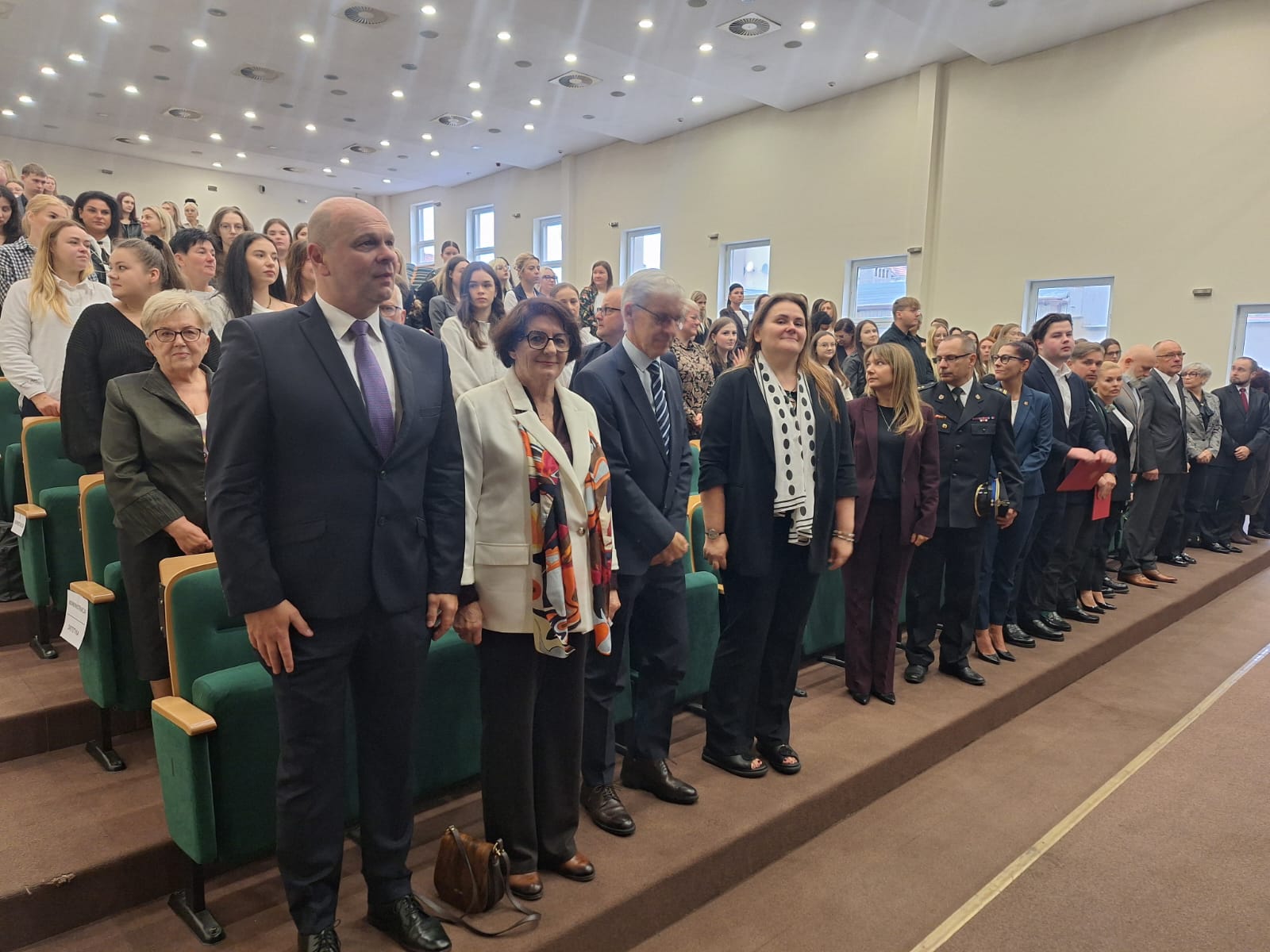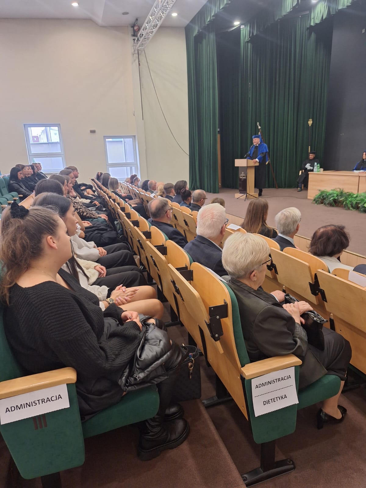W uroczystości, prowadzonej przez rektora uczelni prof. WSH dr Ryszarda Hayna, obok zaproszonych gości i kadry szkoły, uczestniczyło 97 nowych studentów administracji, pedagogiki i dietetyki, którzy po złożeniu ślubowania stali się członkami uczelnianej społeczności.